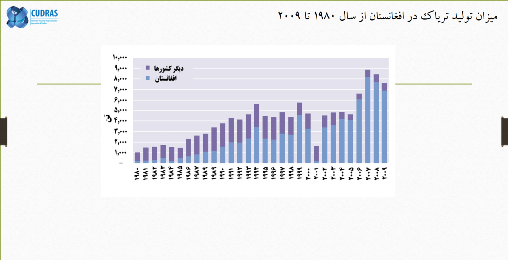 بررسی وضعیت مخدری افغانستان پس از قدرتگیری طالبان موضوع سخنرانی سومین بخش این جلسه بود. در این قسمت محمد بیات ضمن اشاره به سیاست اعلامی امارت اسلامی افغانستان در مسیر مبارزه با مواد مخدر، به اهمیت حکم هبت اله آخوندزاده رهبر طالبان برای ممنوعیت هرگونه کشت، تولید، تجارت، قاچاق و مصرف انواع مخدر و مشروبات الکلی اشاره کرد. با وجود اراده جدی طالبان برای مبارزه با پدیده مواد مخدر اما متغیرهایی همچون خشکسالی و تاثیر روانی حکم «ممنوعیت» موجب افزایش قیمت هر کیلوگرم تریاک از 116 دلار به 203 دلار شده است.
